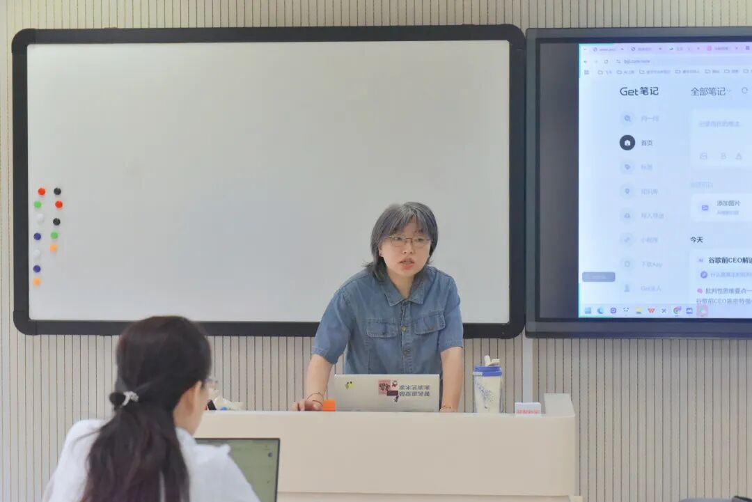 在分享过程中,两位专家与现场老师互动交流,解答了大家在使用AI工具时遇到的难题,气氛热烈。本次工作坊不仅让老师们初步掌握了新技能,更激发了他们勇于尝试、主动摸索的热情。还有老师表示:“两位专家工具百宝箱的称号果然名不虚传,期待与各位老师一起共创AI工具集。”
