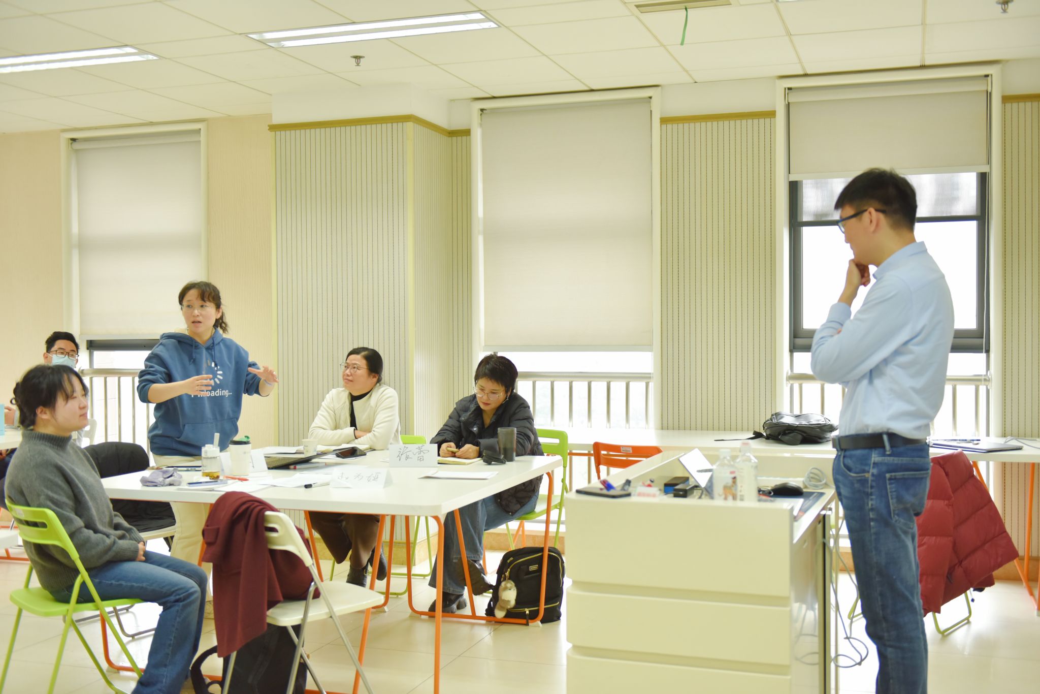 活动伊始,袁东智以“教学设计包含哪些要素”“什么是好的教学设计”为引,组织在场教师结合自己的教学设计开展分组讨论。教师们从各自学科视角出发,分享了对教学目标、课程资源、教学方法等要素的理解。袁老师指出,教学设计不应局限于单一课堂,而应“站在学科的角度思考一堂课,站在领域的角度思考一门课”,系统构建知识、能力与情感相统一的教学体系并引导学生一步步建构知识。
