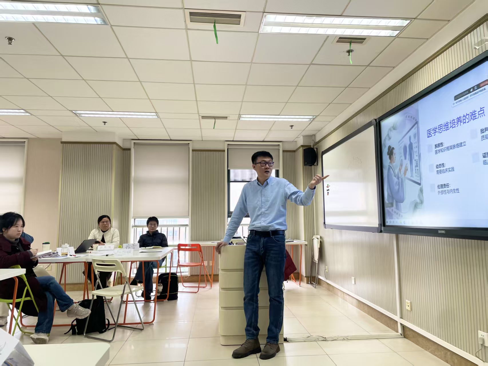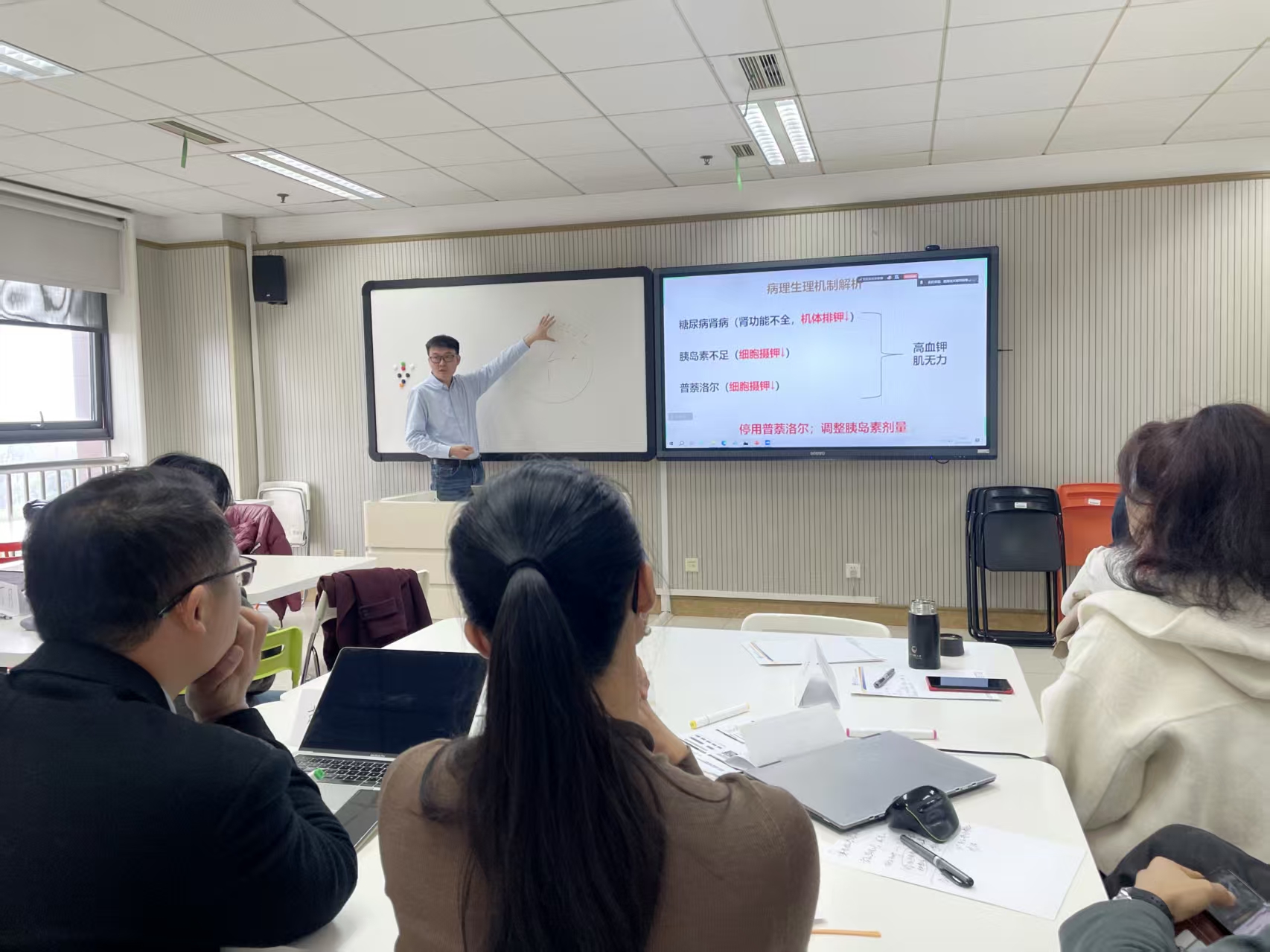 随后,袁东智提出问题“AI可以看病吗”,并以医学中的“血钾调节”为例,引导教师开展基于真实病例的AI辅助探究式学习。现场教师化身学生,身临其境体验袁东智老师巧妙的教学设计。各小组教师借助多种AI工具,对复杂临床案例进行分析与推理,在协作中体验如何将学科知识、逻辑思维与临床实践有机结合。袁东智深入剖析了AI在医学教育中的优势与局限,经层层推理,他认为,AI目前仍不具备“不确定性推理”能力,无法替代临床医生在动态、复杂情境中的综合判断。因此,教育的核心目标并非培养依赖工具的学习者,而是培养能够驾驭技术、具备系统性思维与人文关怀的“完整的人”。他强调,教学的本质和出发点都在于“内容”,好的教学设计应做到“言之有物、言之有理、言之有人”,既注重知识的系统性与思辨性,也关注学生的情感体验与价值塑造。关于教学内容的设计核心,袁东智给出了知识线、故事线、思想线的逻辑链条。