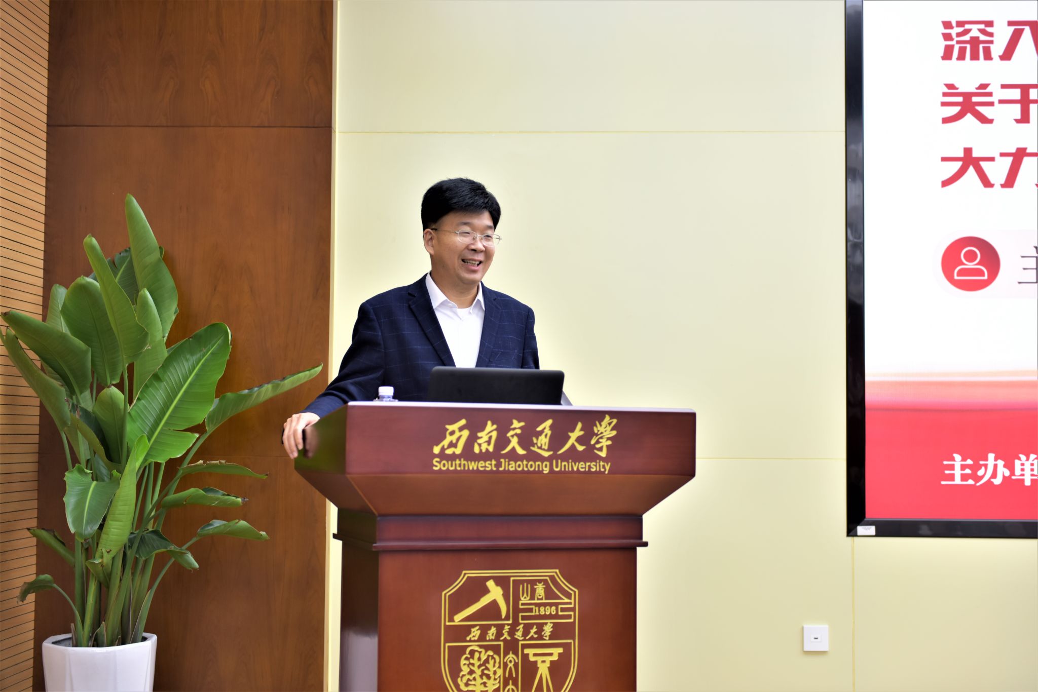 为深入学习贯彻习近平总书记关于思政课建设的重要指示精神,进一步推动思想政治理论课教师队伍建设,本科生院与马克思主义学院联合启动思想政治理论课教师专题研修。10月23日下午,研修首场活动在犀浦校区举行。四川省学术和技术带头人、四川大学马克思主义学院纪志耿教授作专题报告,本科生院常务副院长富海鹰、马克思主义学院党委书记廖军、院长田永秀及全体思政课教师参加活动。活动由本科生院副院长兼教师教学发展中心主任李相强主持。
